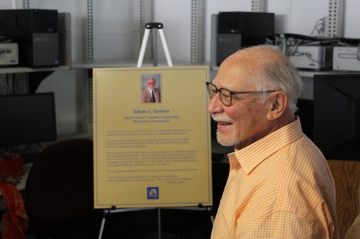 The Electrical and Computer Engineering classroom labs on the second floor of the Bossone Research Enterprise Center have been named after Dr. Edwin Gerber. Dr. Gerber, who recently retired after more than 50 years of service to the ECE Department, was recognized for his considerable contribution to the undergraduate curriculum during his lengthy tenure.