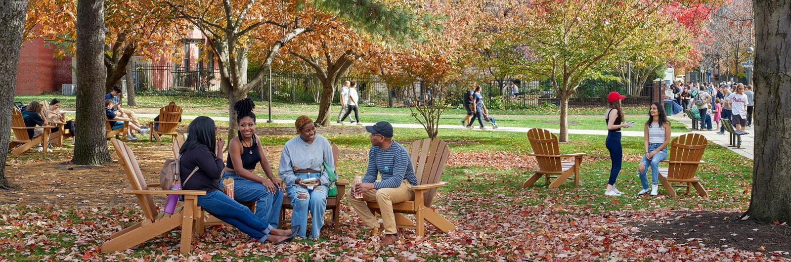 Race Street Walk is located in the center of some of our residence halls, including Race Street Residences and Kelly Hall. In the heart of this student residential district is the Library Learning Terrace. When you want to get away from your room and have the ability to study alone or in groups, the Terrace is a great option for you. The Terrace has a projector and private hub station for tutoring or coaching, whiteboards, and adjustable seating areas.