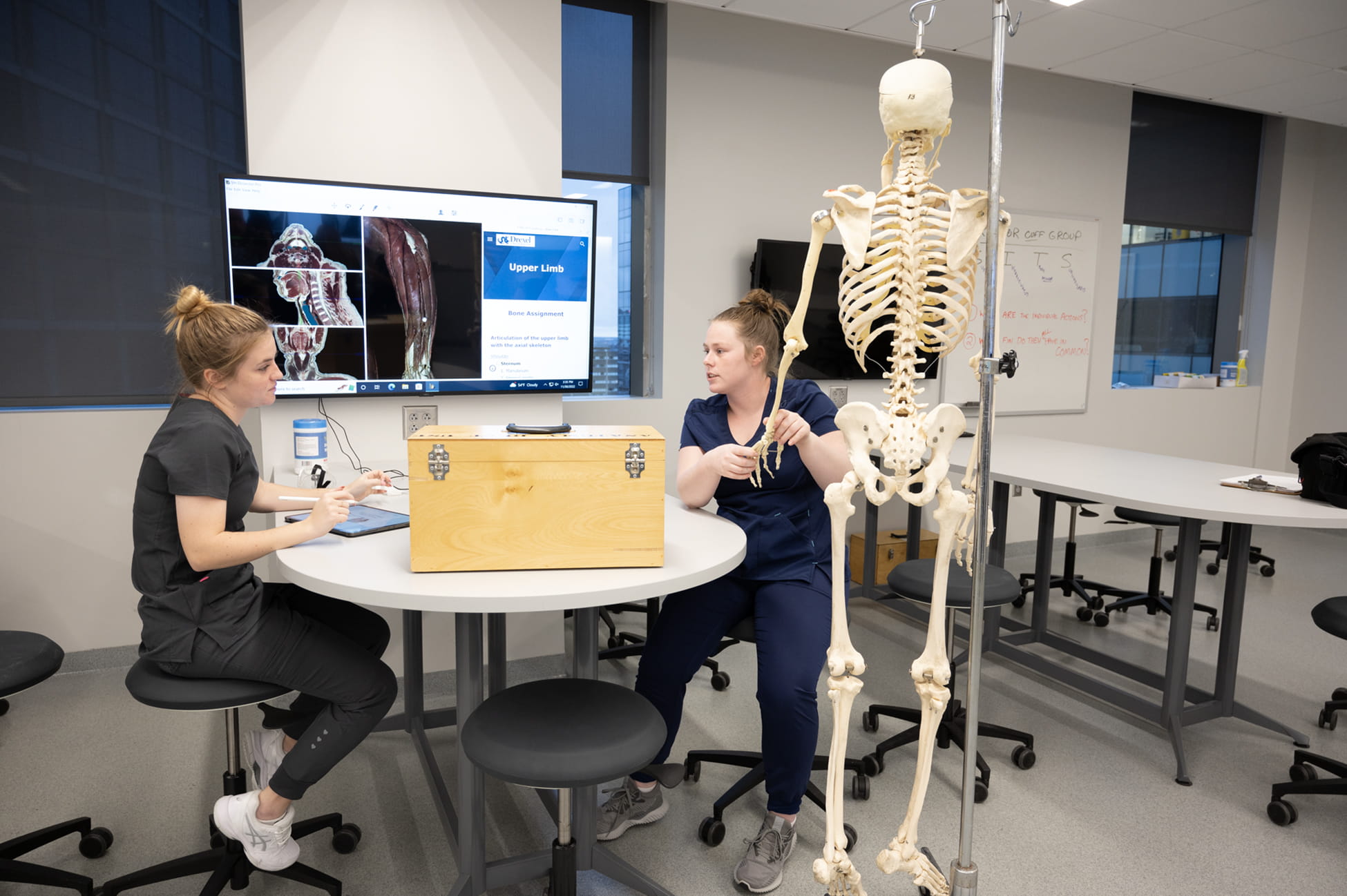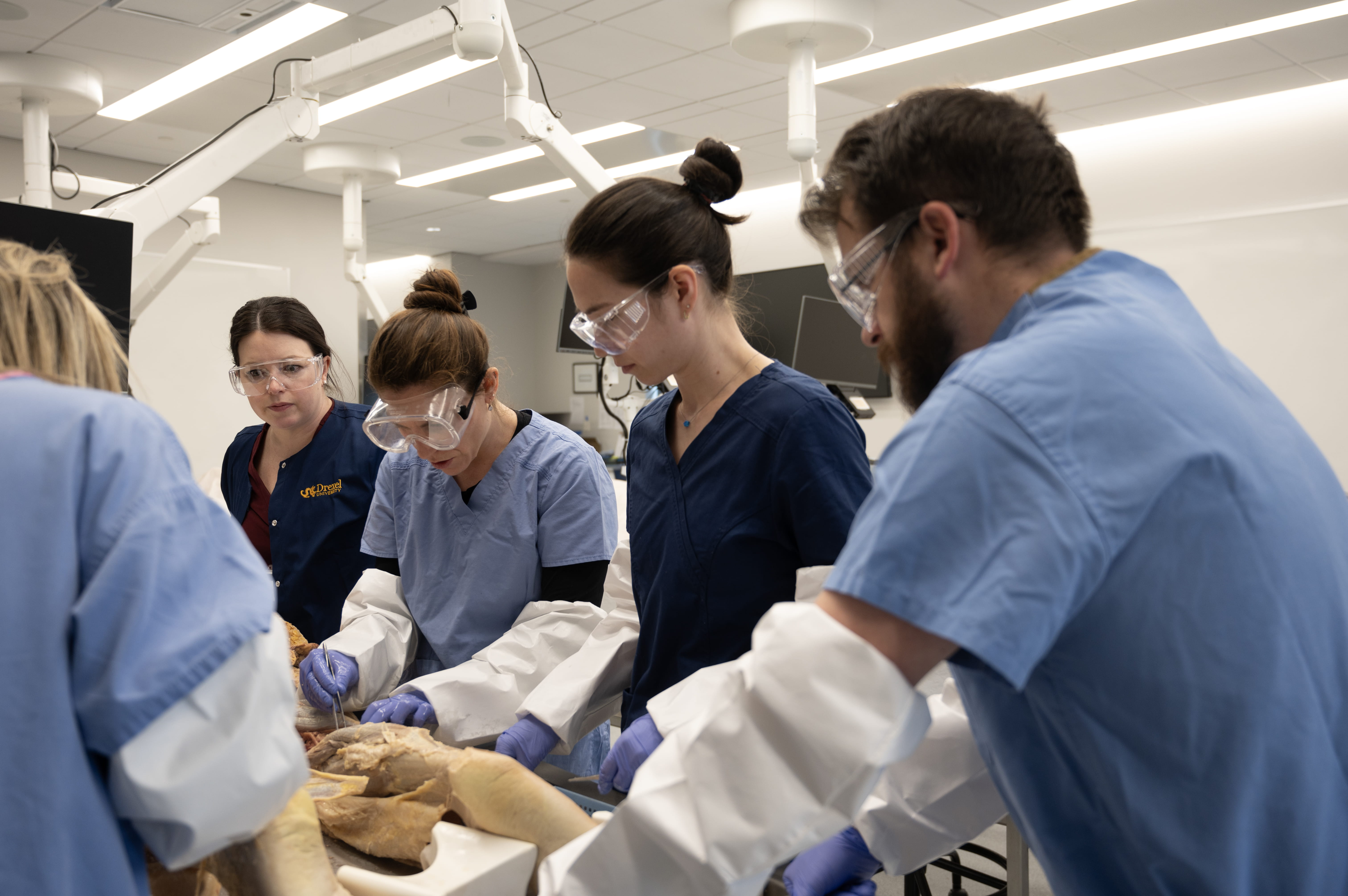 Our Philadelphia anatomy lab is on the 12th floor of the Drexel Health Science building, with large windows offering an expansive view of Philadelphia. Approximately 800 students in the College of Medicine (COM) and College of Nursing and Health Professionals (CNHP) programs rotate through the Drexel University anatomy labs each year. Spanning 10,875 square feet, our anatomy lab houses 60 dissection tables shared between our COM and CNHP programs, each equipped with a full computer and AV technology for student use.