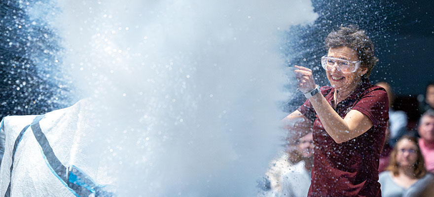 In this talk, Tatiana Erukhimova, PhD, will showcase some of her most exciting physics demonstrations – many of which you can easily try at home! Get ready for clouds and magic bubbles, liquid oxygen and frozen erasers, levitating trains and floating toilet paper, spinning wheels, potato physics, and much more. And none of it is magic – it’s physics! Tatiana's recent video demonstrations have become a viral sensation, with over one billion views on Texas A&M social media. She has appeared on CBS Mornings, ABC News, NPR, and The Jennifer Hudson Show.