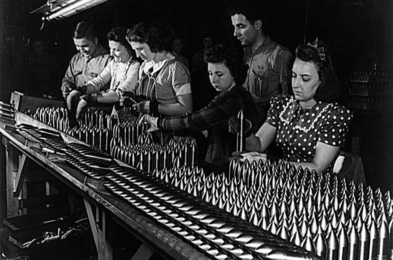 Women work in a Midwestern aluminum factory that produced war materials in 1942