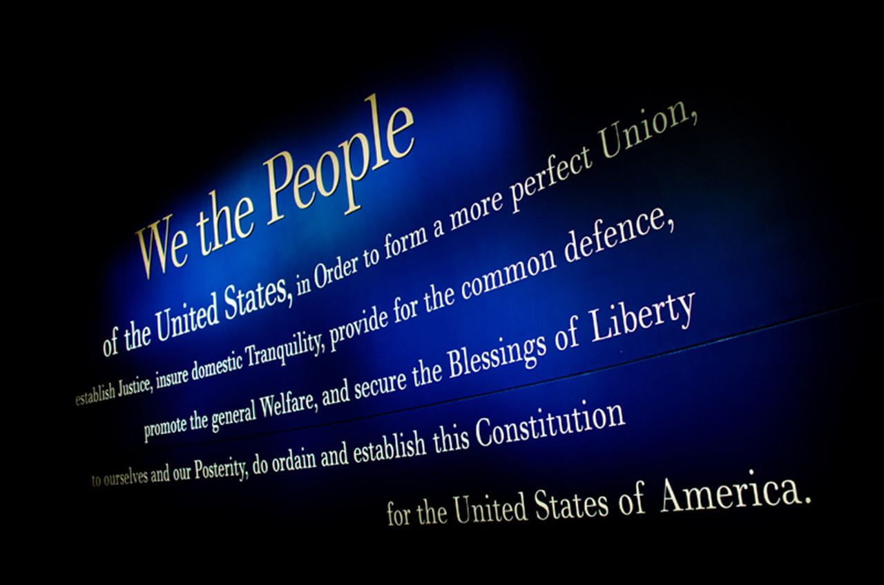 The Preamble Wall at the entrance of the National Constitution Center's main exhibition, The Story of We the People.