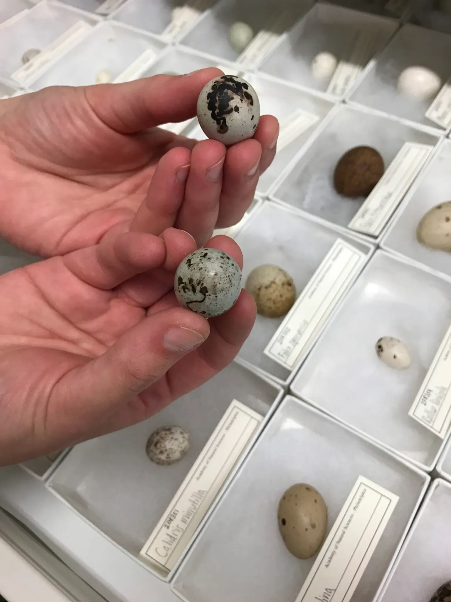 Del Grosso studies bird eggs in the Academy's collection