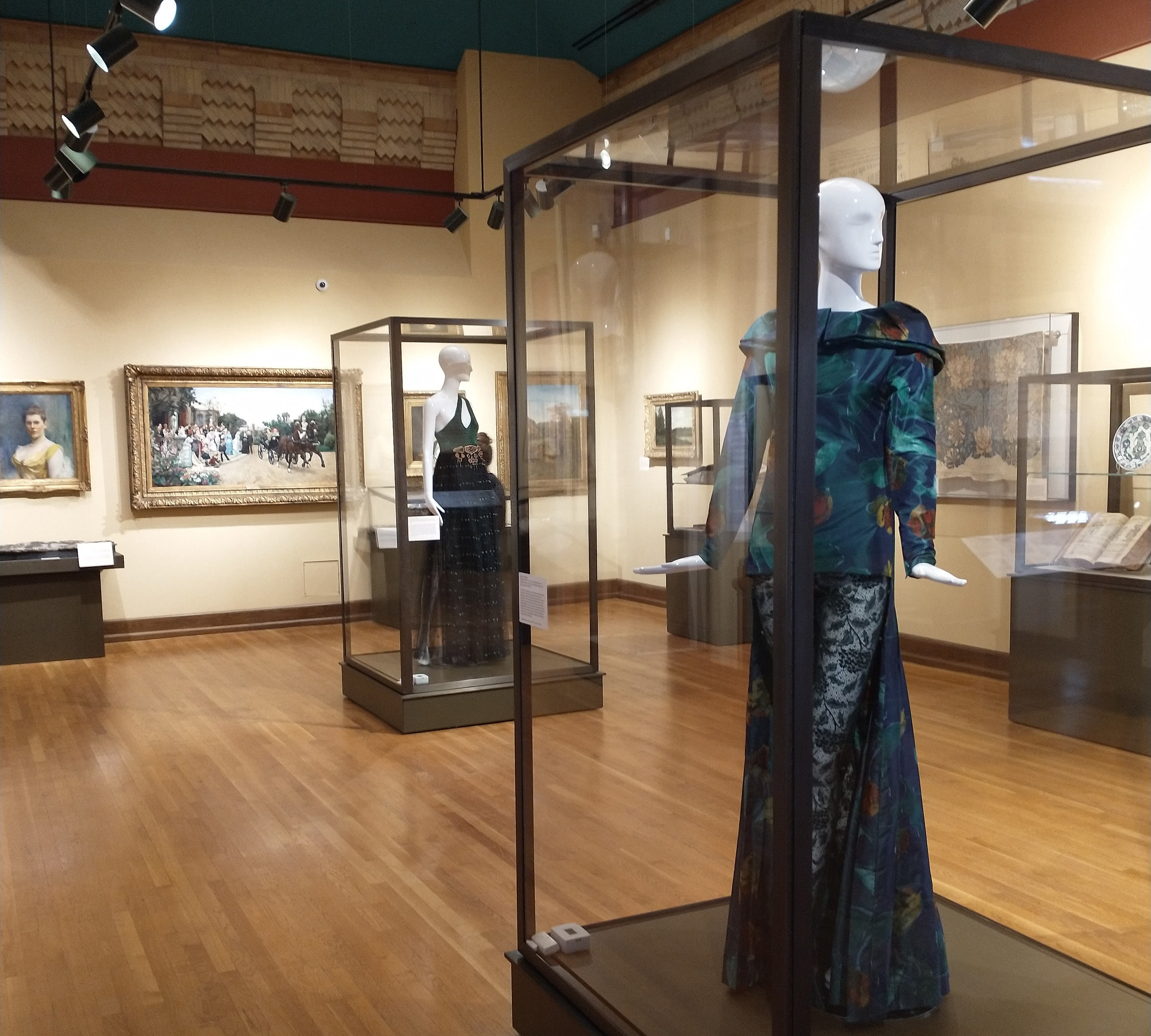 The inaugural exhibition in the new gallery, curated by Cara Fry and Derek Gillman, is designed to provide a window into Drexel’s extraordinary collections which range from rare books to couture; from natural science to fine and applied arts. Every piece in the show is a treasure – including a Rittenhouse Orrery clock from 1873, a 1991 James Galanos evening gown, a 450 million year old slab of fossilized trilobites and a 16th century Paracelsus incunabulum. Also highlighted is an 1876 William Morris textile which serves as a fascinating case study for the way in which the objects in the Drexel collections invite interdisciplinary teaching and research and thereby provide historical context and contemporary relevance.