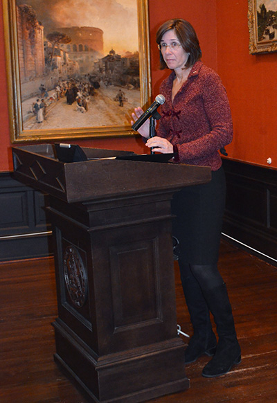 Erin McNamara Horvat, Senior Vice Provost for Faculty Affairs, announces the installation.