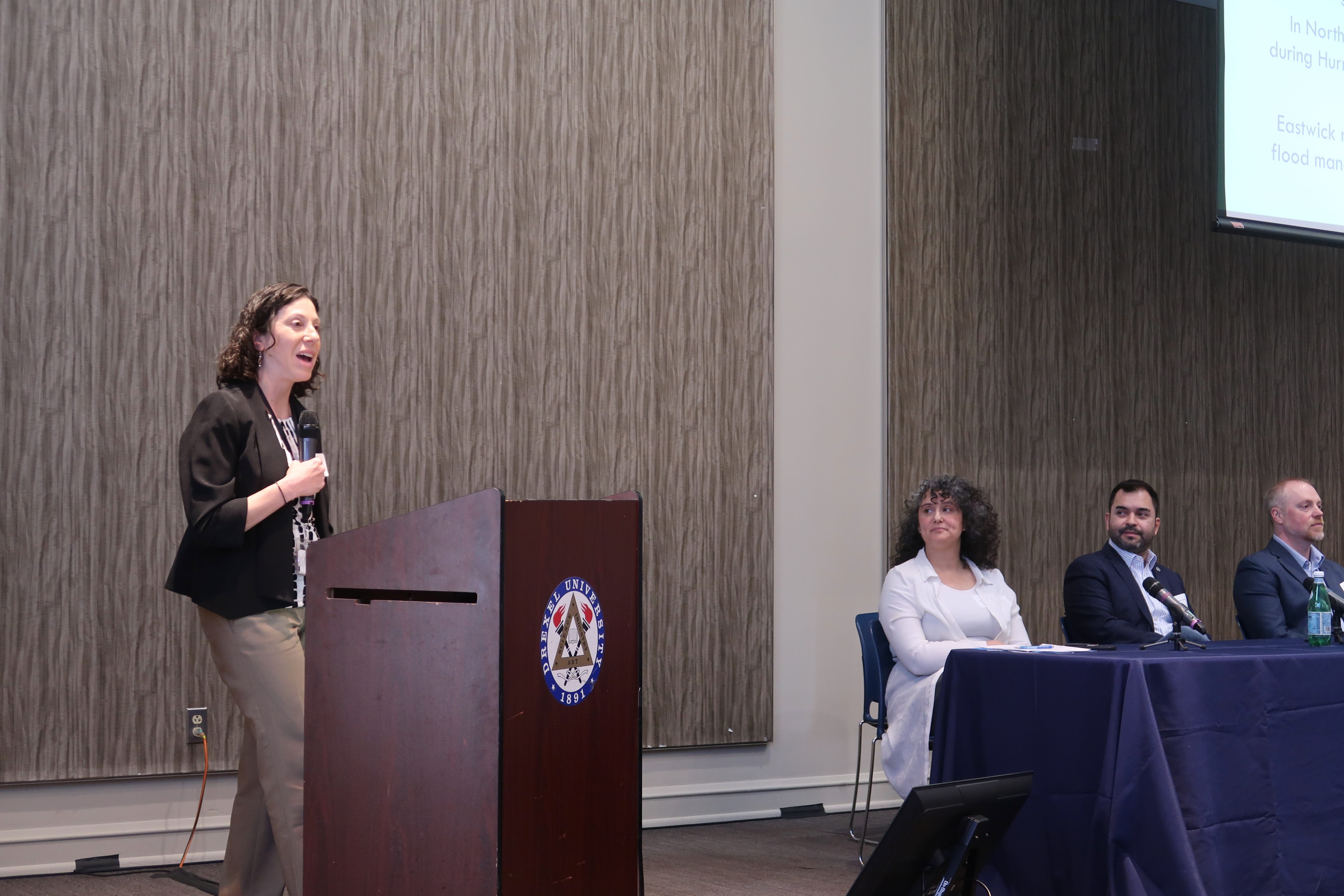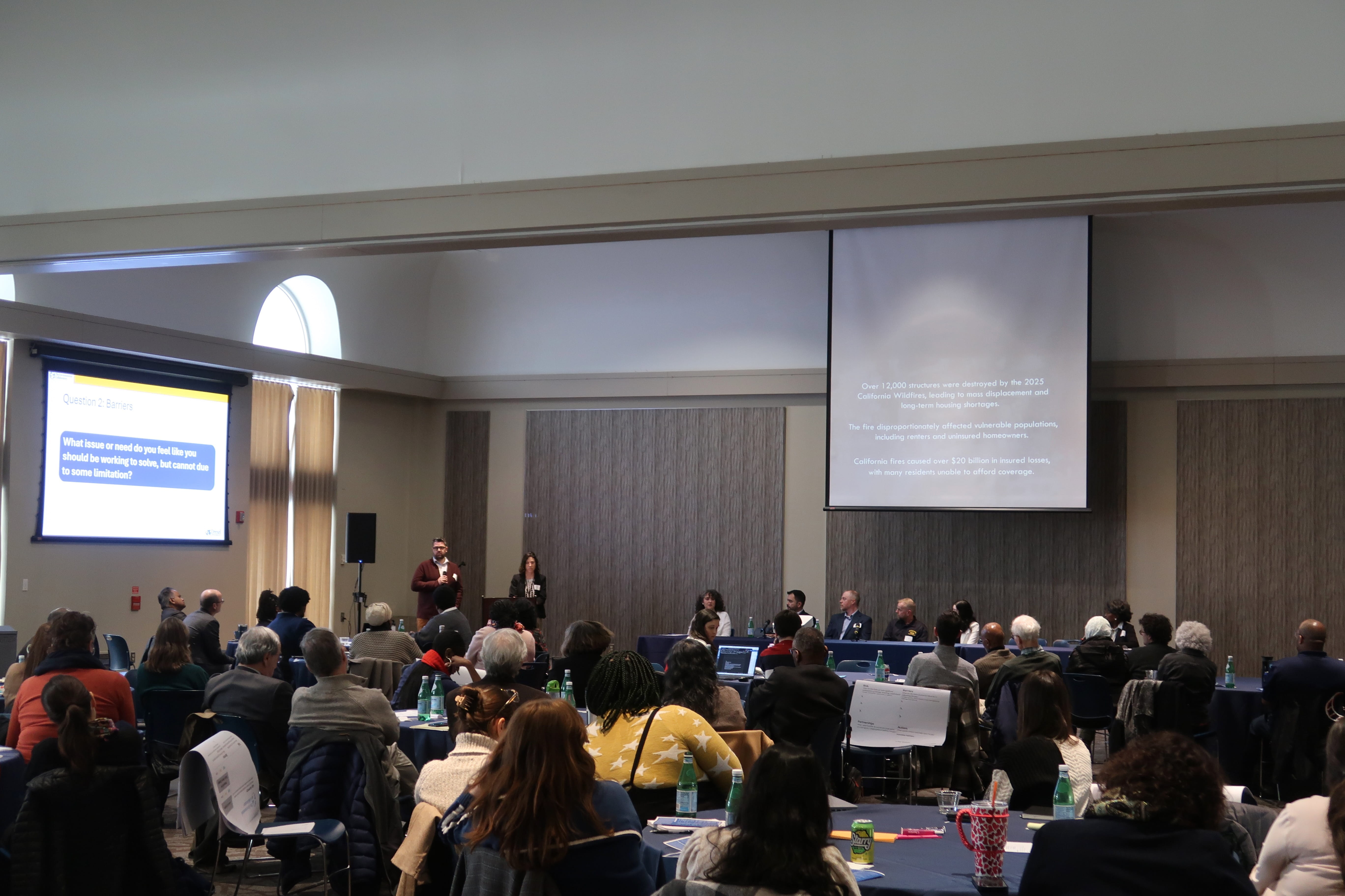 The event opened with remarks from Mathy Stanislaus, who framed the urgency of rising extreme weather impacts and reviewed insights from the pre-event survey, which asked participants to rank priorities and identify gaps in current preparedness efforts. To ground the conversation, the room featured a looping scene-setting backdrop video developed by Maya Hillis, offering stark context and statistics about the growing severity and long-lasting consequences of recent climate-driven disasters.