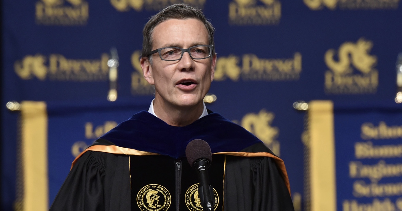 James Herbert, executive vice provost and inaugural dean of the Graduate College, encouraged Drexel’s newest recipients of the highest degrees to be the intellectual leaders of the future, in his keynote address at the Doctoral Hooding Ceremony on June 9, held for the first time at the Pennsylvania Convention Center.