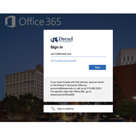 4. The Drexel Microsoft Office 365 sign-in page will display the Drexel logo and prompt you for your Drexel email address.