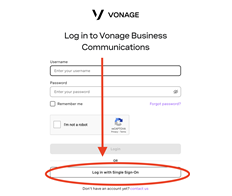 2. Select Log In with Single Sign-On on the Vonage Business Communications Log In page.