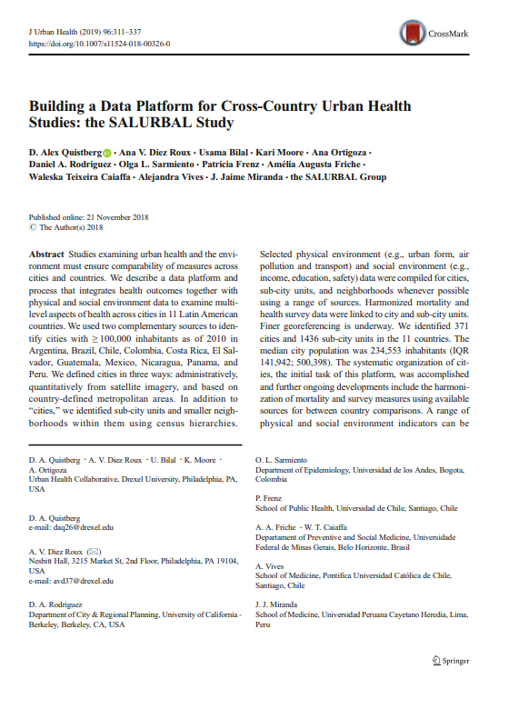 This study describes the creation and harmonization of the SALURBAL data resource, created to characterize and study the drivers of urban health in middle-income countries in Latin America. This resource is the largest in scope and size in cities in the region. Published January 2025 in International Journal of Epidemiology.