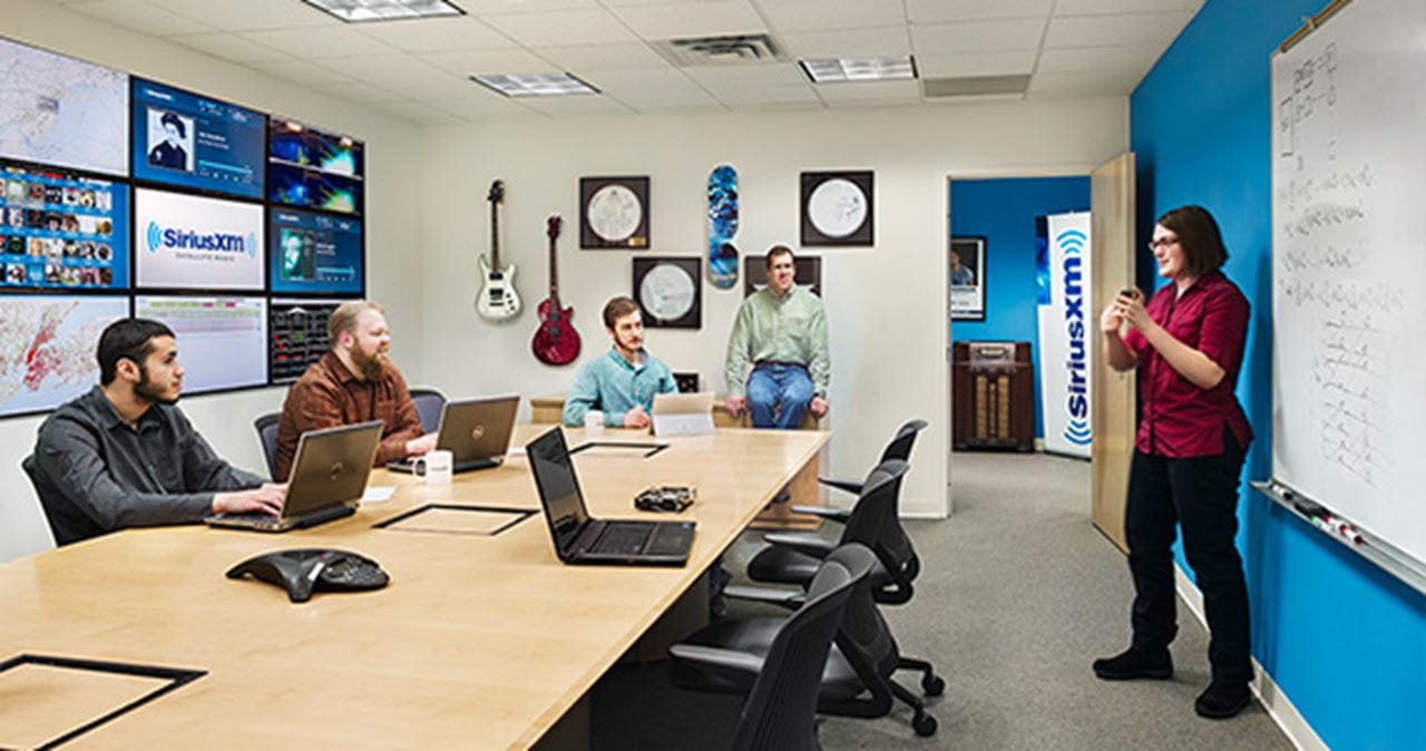 SiriusXM is a popular co-op spot. Student Andrew Shidel worked on a bitrate mapper (in simplistic terms, a huge digital map) to share Sirius' signal rates across the country. It's the first thing people see when walking into Sirius' lobby in its New Jersey office.