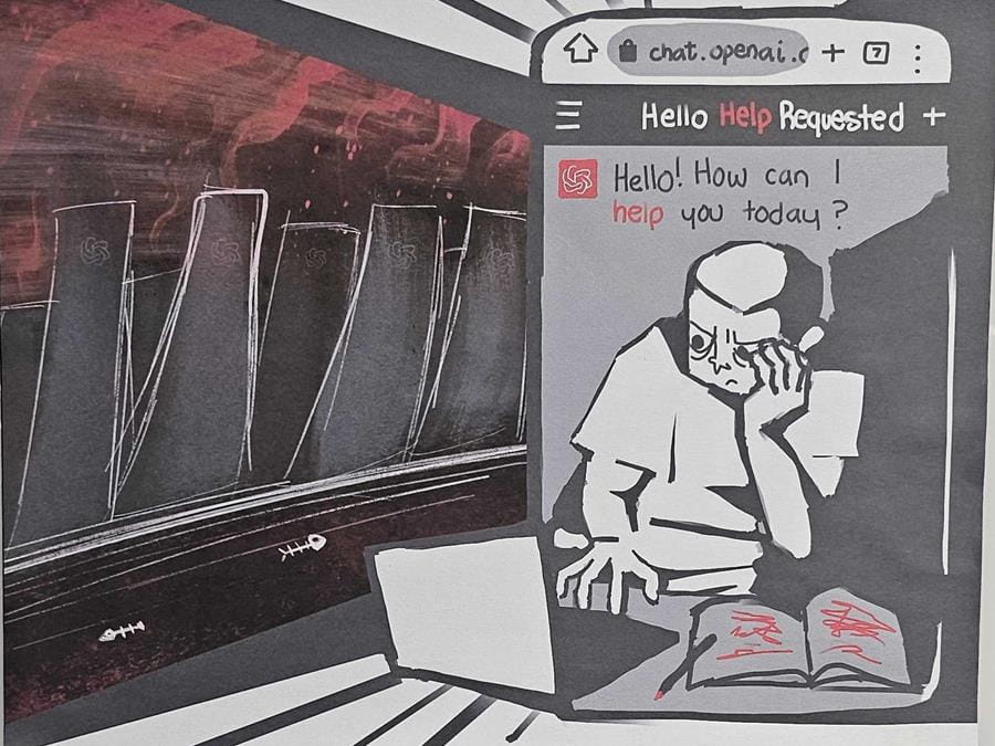 The students who created this mural were concerned with access to mental health services and also the proliferation of AI.