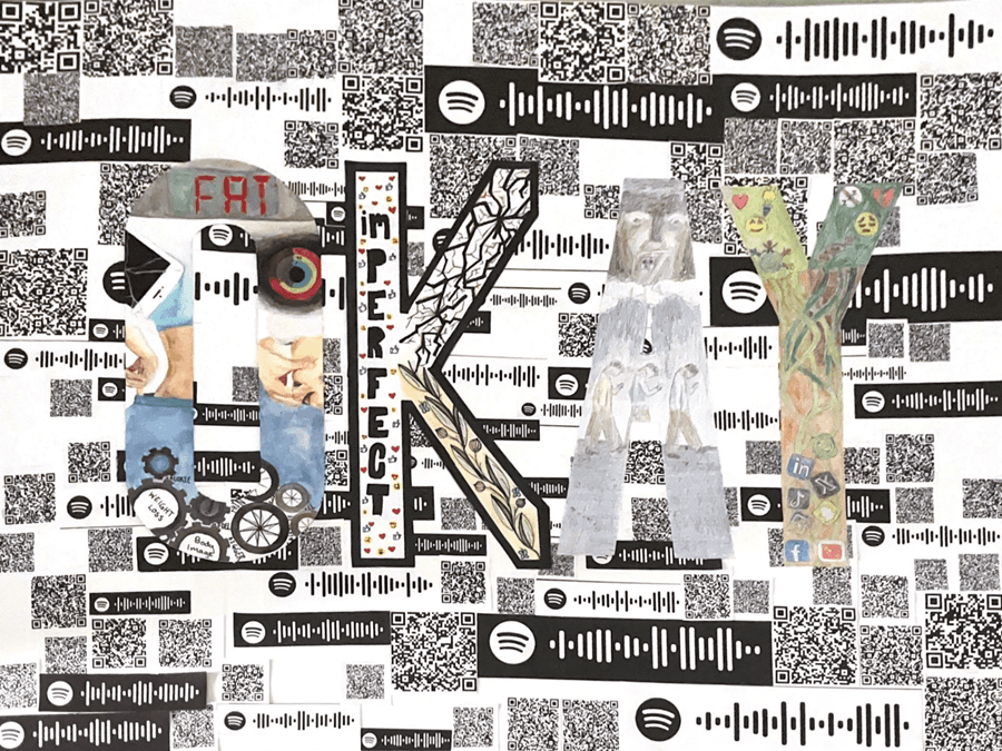 This mural is about the dangers of overusing social media for young people. There were four group members and each designed one letter of the word “OKAY” to reflect their own relationship with social media. The background of the mural has several QR codes that lead to information about social media use and young people.