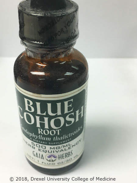 Blue Cohosh (Caulophyllum thalictroides): Also known as squaw root, papoose root, or blue ginseng, this is utilized as a abortifacient or antispasmodic and also used for dysmenorrhea. The active ingredient is N-methylcytisine, a compound with nicotinic properties. Toxic effects from this compound present as nicotinic toxicity (tachycardia, elevated blood pressure, nausea, vomiting, abdominal pain).