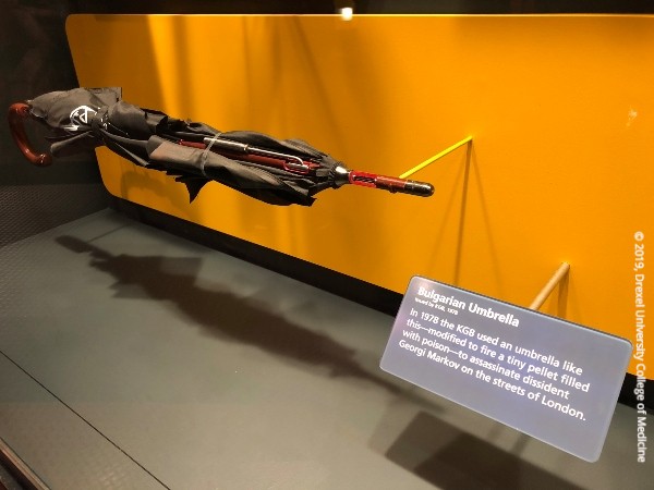 In 1978, the KGB used an umbrella, modified to a weapon capable to firing tiny ricin-filled pellets filled with poison to assassinate Georgi Markov in the streets of London.