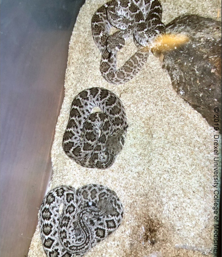 Crotalus adamanteus (Eastern diamondback) is the largest rattlesnake species. Signs and symptoms of toxicity are almost always apparent within 8–12 hours of envenomation. Antivenom [Crotalinae polyvalent immune Fab (ovine), or CroFab (Protherics)] may be indicated depending on symptom severity. Venomous snakes possess glands associated with fangs that allow venom delivery. They usually have slit pupils, and sometimes have heat-sensing pits.