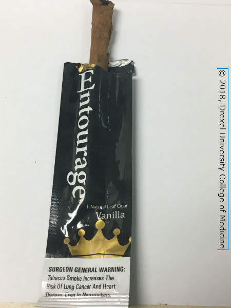 Entourage Cigar (Vanilla flavor): Cigars and cigarillos are bundles of dried and fermented tobacco leaves designed to be smoked by the user. In addition to the carcinogenic and pulmonary toxicities of tobacco smoke, cigars provide potent exposure to nicotine. Symptoms of significant nicotine exposure include nausea, vomiting, excessive salivation, abdominal pain, pallor, sweating, hypertension, tachycardia, ataxia, tremor, headache, dizziness, muscle fasciculations and seizures.