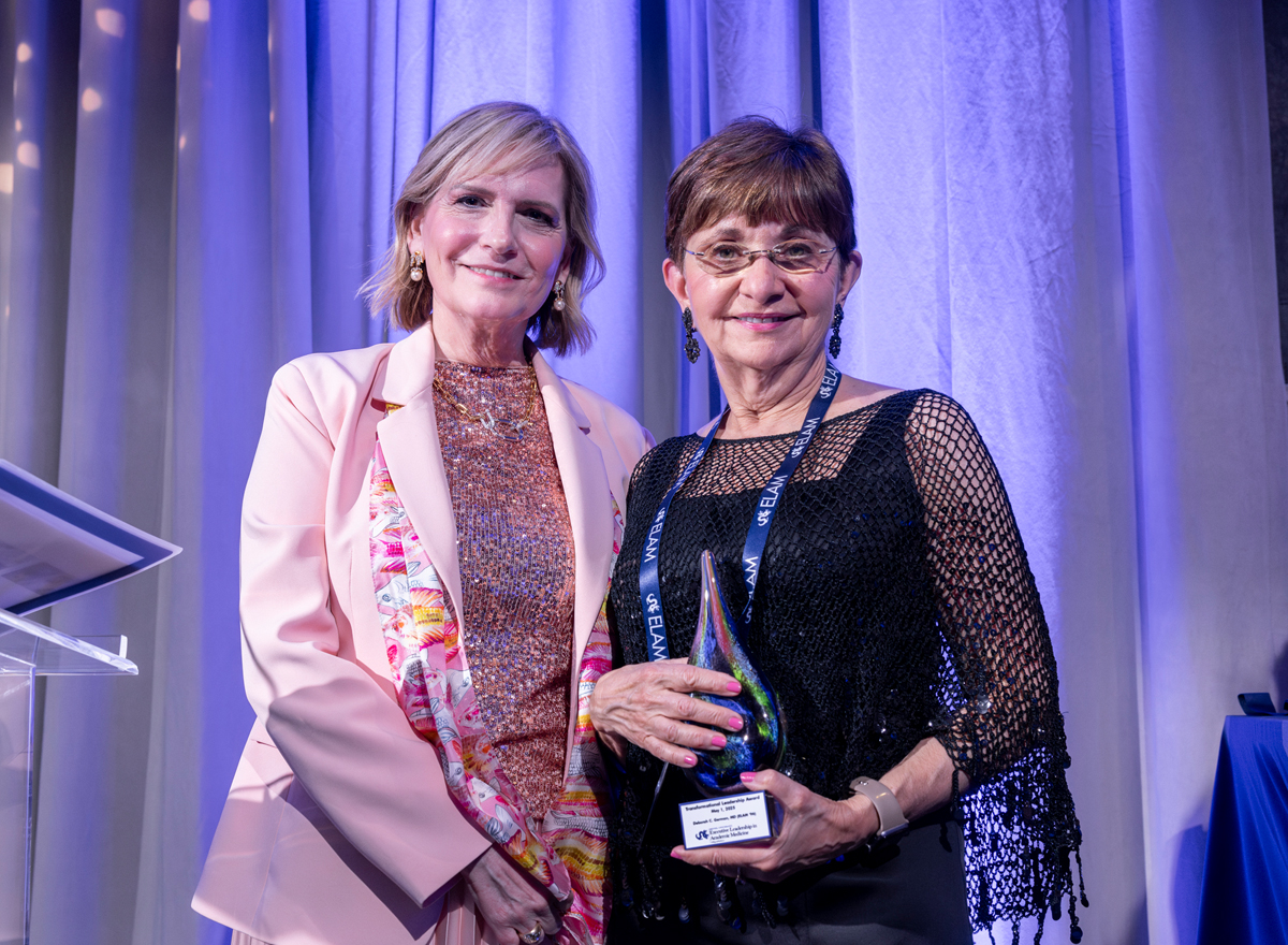 Katalin Karikó, PhD, (left) receiving the Pinnacle Award from Nancy D. Spector, MD, ELAM ’10