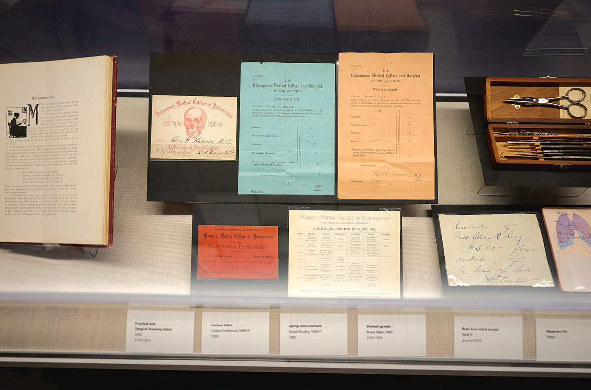 The exhibit was developed by the Legacy Center: Archives and Special Collections, the Drexel Founding Collection, and the Health Sciences Building advisory group for art and historical exhibits. It was created with input from students, faculty and professional staff of the College of Medicine, the College of Nursing and Health Professions, and the Graduate School of Biomedical Sciences and Professional Studies.