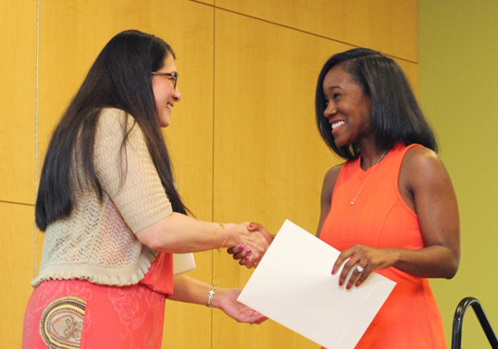 Janet Fitzpatrick, MD, presents the Dr. Mary Yankosky Award for Endocrinology to Sade Solola.