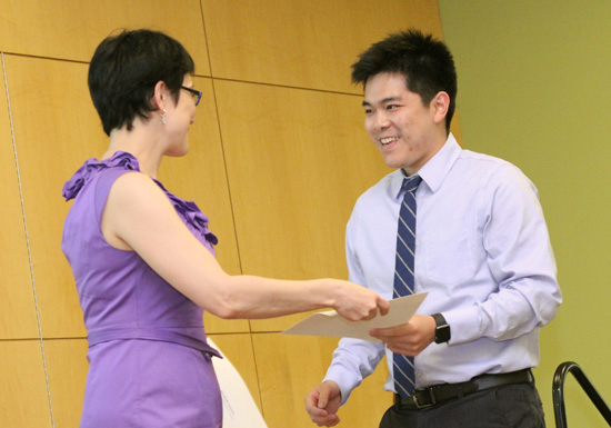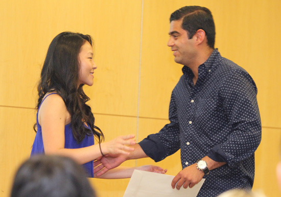 Diane Sun presents the Student Government Association Award to Sameer Massand.