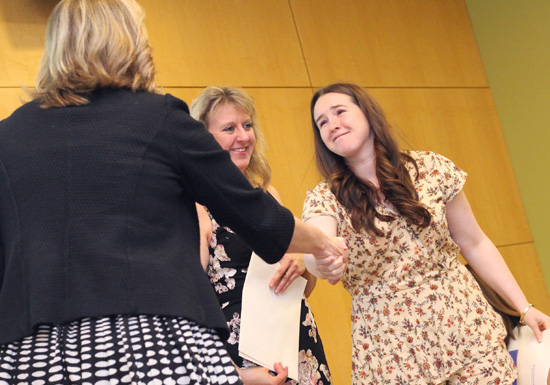 Aimee McMullin receives the Daniel M. Tabas Award for achievement by a student pursuing primary care. Unbeknownst to her, she would win the Clifford award.