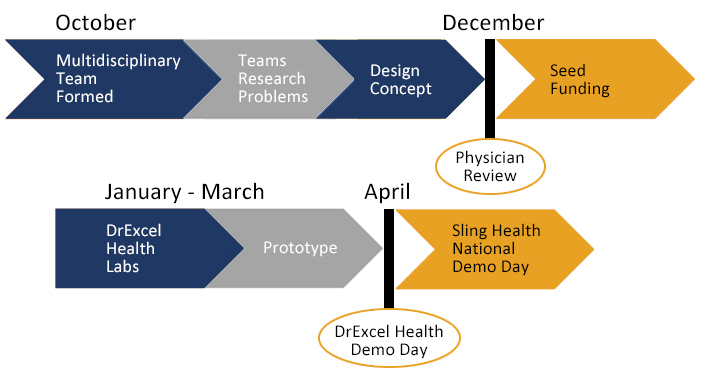 Drexel engineering students at the School of Biomedical Engineering, Science and Health Systems found that they could not form an accurate picture of the needs that exist in clinical practice because they had limited familiarity with the clinical patient environment. DrExcel Health provides an opportunity for engineering students to identify projects that would benefit from collaboration between clinical faculty, College of Medicine alumni and senior medical students.