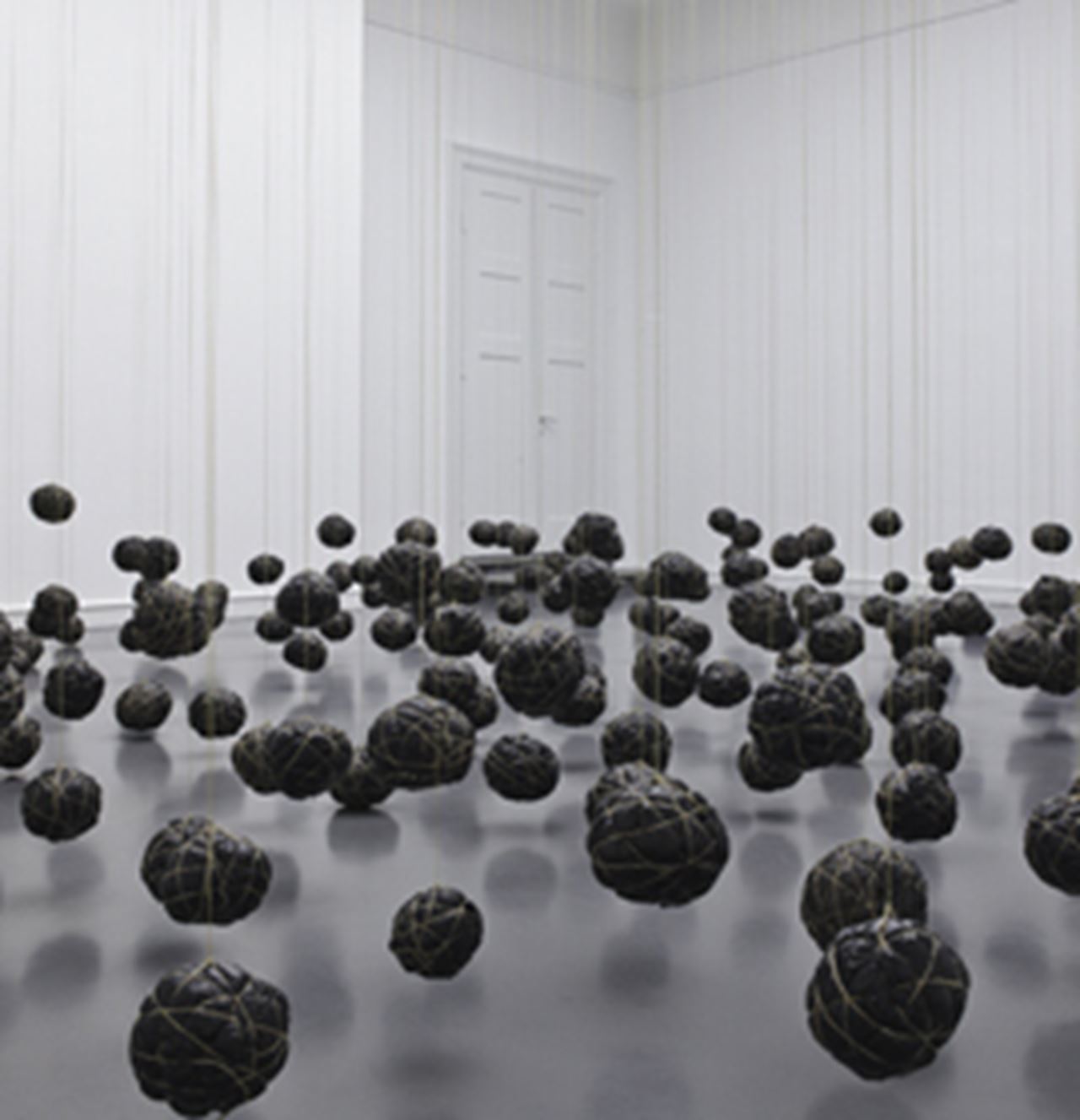 The exhibition will feature more than 10 collections of collages, sculptures and installations, including such highly regarded works as Suspended Playtime, which explores Kenyan children’s inventive practice of making soccer balls out of bundled and bound garbage bags, and The Histology of the Different Tumors of the Uterus, a series of collages based on early 20th century medical illustrations.