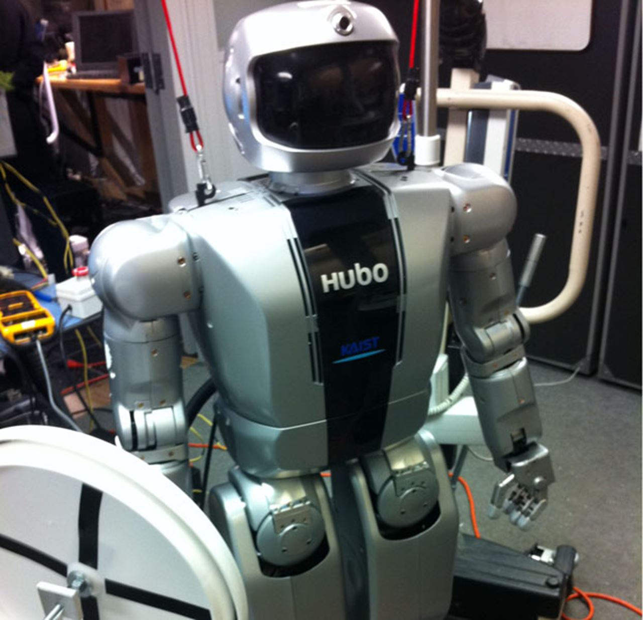 Each team member is charged with programming the HUBO humanoid robot platform to perform one of the eight disaster-recovery-related tasks. In addition to serving as the central processing and troubleshooting center for the team, Drexel is also programing the robot to get into and out of a vehicle in tandem with University of Delaware researchers who are developing a way for it to drive and navigate. Engineers from Ohio State are working on a way for it to climb over rough terrain. Georgia Tech’s group is programming the robot to clear debris and break through a concrete wall. At Swarthmore College, roboticists are getting the robot to open a door. Purdue and Indiana University researchers are teaming up to tackle the task of having the robot climb a ladder. Worchester Polytechnic Institute engineers are handling the valve-turning task and a group from Columbia is programming the robot to re-attach a hose.