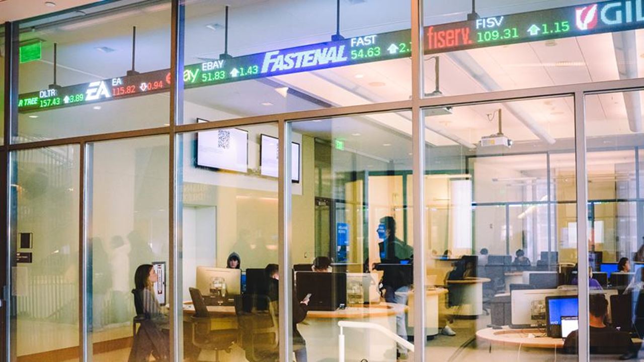 Established in 2013 with the purpose of providing hands-on training for the business leaders of the future, the finance trading lab serves as a resource for teaching students about portfolio management, equity modeling and more, through practical experience with cutting-edge, industry-standard software. The lab features 12 Bloomberg terminals and a prominent stock ticker with critical information on current market conditions.