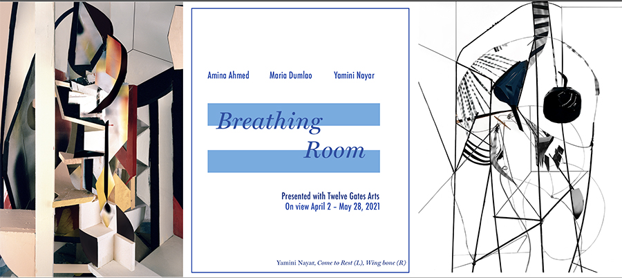 We are so excited to announce that the Pearlstein Gallery will be re-opening on Friday, April 2nd to introduce ‘Breathing Room,’ presented in collaboration with Twelve Gates Arts. This exhibition, curated by Twelve Gates’ founders Aisha Khan and Atif Sheikh, will feature three regional artists working in drawing, printmaking, photography, and installation: Amina Ahmed, Yamini Nayar, and Maria Dumlao.