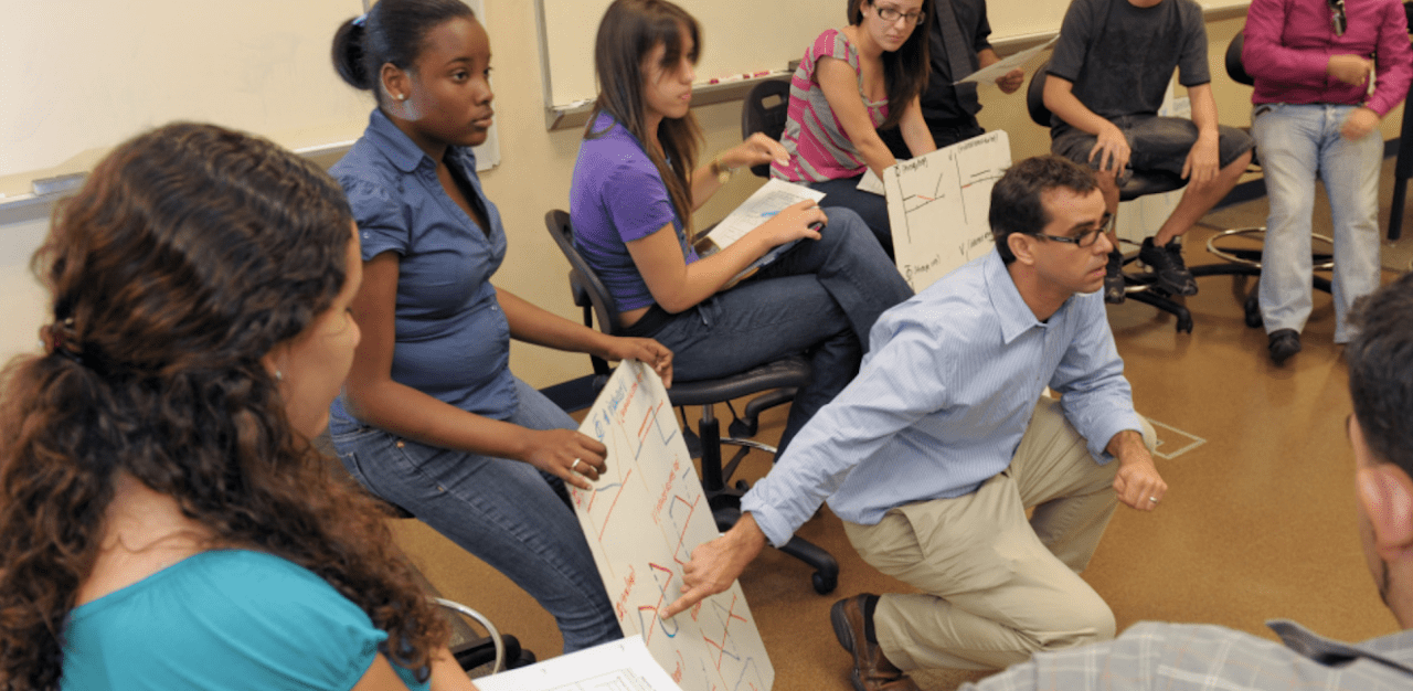 Brewe turns to Modeling Instruction (MI) when he teaches as opposed to relying on traditional lectures. This pedagogical approach builds upon his research on networks developed within a classroom environment. With MI, discussion and student-centered learning are key instructional components.