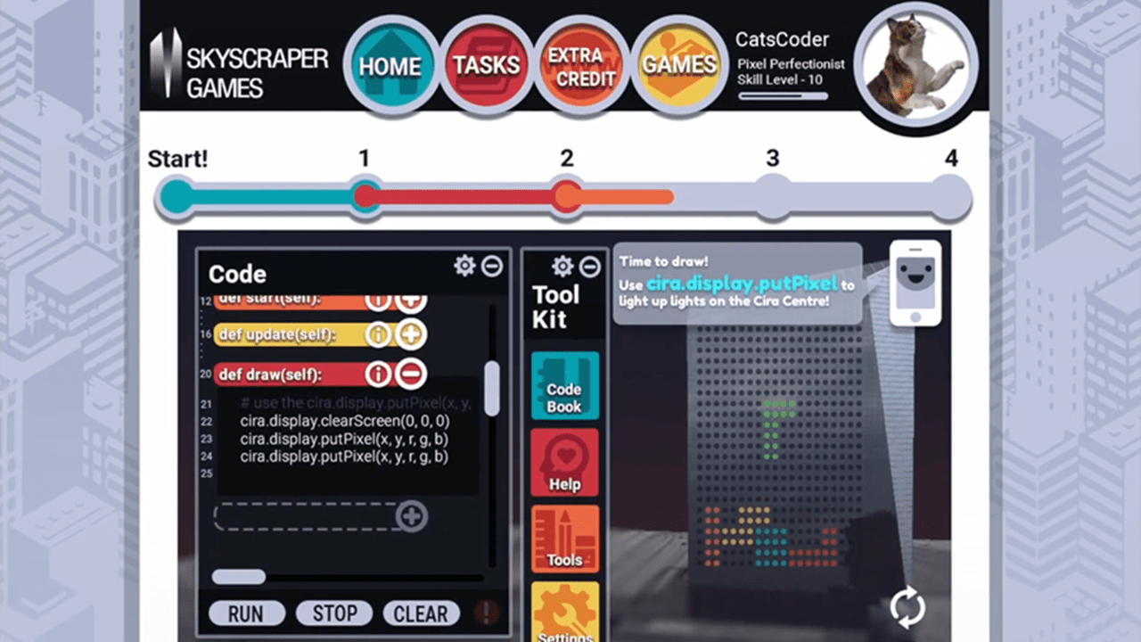 With support from a Young Futures Innovators grant, Skyscraper Games will see students program their games using the block-based software Python IDE, or integrated development environment. This drag-and-drop process of virtual game design simplifies the coding process, making it easier for young designers to learn and understand design concepts. The games that are selected for play on the skyscraper will be available to be played on the digital twin of the Cira Centre. According to Lee, the accessibility of the digital platform will empower young people through game design, development and foster community building through public play.