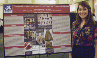 Fashion Design students Cassandra Milani and Lydia Hryshchyshyn worked alongside Drexel Historic Costume Collection (DHCC) curator Clare Sauro. Cassandra's "Donor History: The DHCC' researched the earliest and iconic donations to our collection of over 10,000 garments and accessories, while Lydia's "Conservation Methods for the DHCC' focused on the collection's management and conservation.