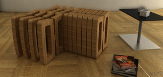 Students enrolled in the course Furniture Investigations used their favorite books as inspiration for designing a unique piece of furniture. Product Design Professor Mike Glaser's class worked with Ponoko, an online shop for individualized goods that provides on-demand building, incorporating laser-cutting into design and product concepts. The students worked over two terms conducting research, creating prototypes, building full-scale versions, and working with Ponoko to make the pieces before assembling them at our studio on campus. The finished furniture will be on display in a show on June 2nd from 6PM-9 PM in the Bossone 3rd floor Atrium.