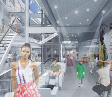 The Kay A. Bossone Fashion Runway will offer students of the Fashion Design Program the opportunity to present finished garments and accessories to their fellow students and faculty, and in critiques conducted by industry professionals.  The runway will extend along the length of the atrium on the third floor, creating multiple viewing angles for instructional review and observation. The Kay A. Bossone Fashion Runway will provide our students with an environment that represents industry standards, allowing them professional insight on how to present their work.