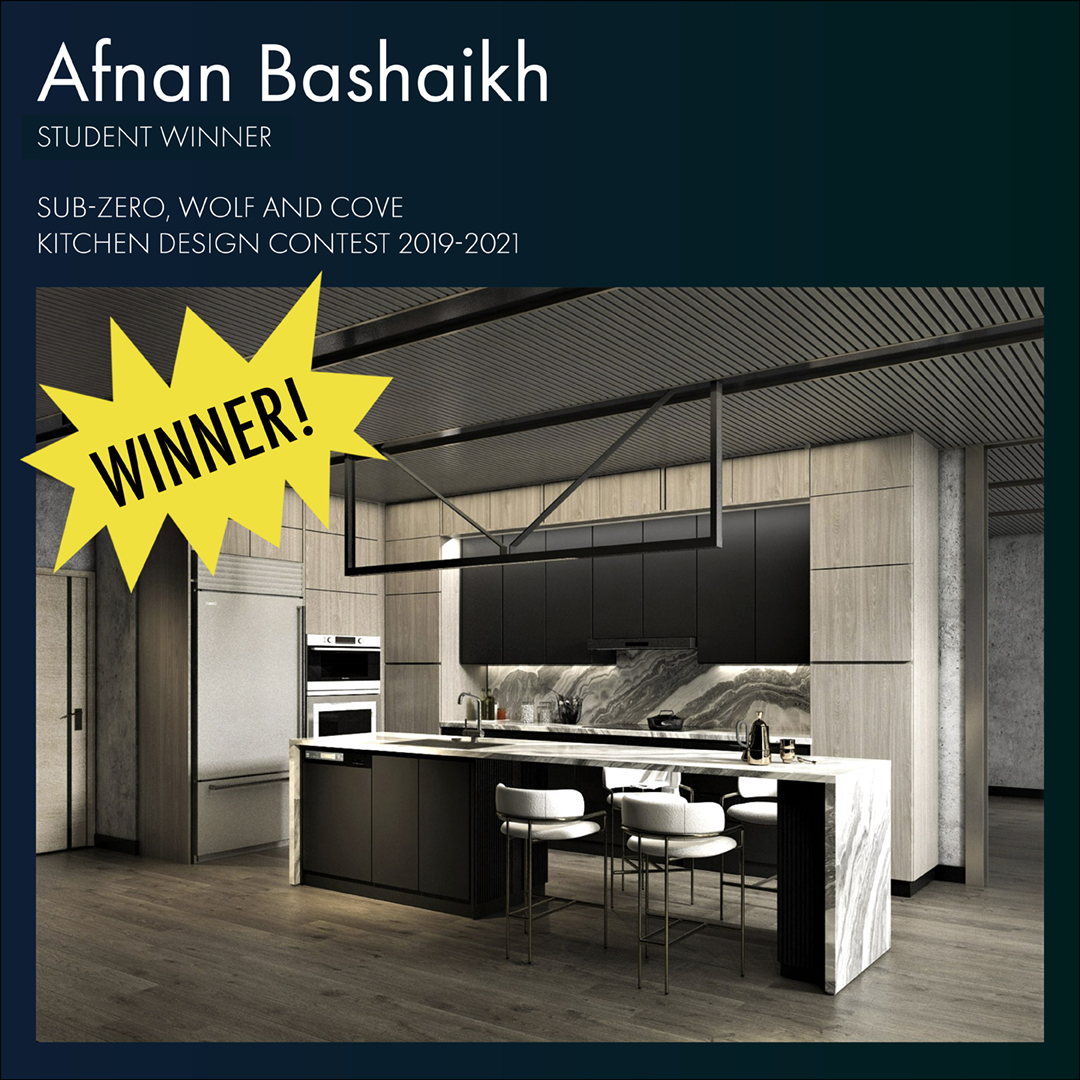 Drexel graduate student Afnan Bashaikh was announced as the student winner of the international 2019-2021 SubZero, Wolf, and Cove Kitchen Design Contest